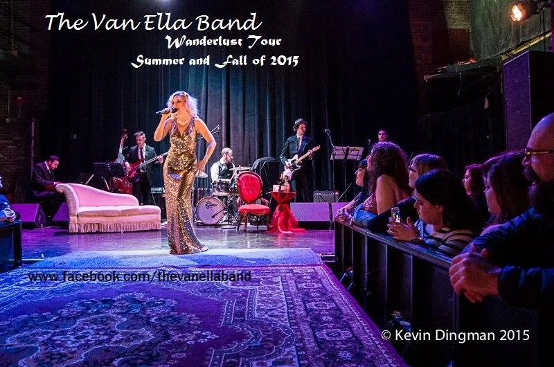The Van Ella Band is an exciting new project created by St. Louis musicians Andy Hainz and Dustin Sholtes (band leaders for Spectaculaire, The Beggar's Carnivale, and members of numerous bands and orchestras) and Lola van Ella, international and award winning burlesque performer, singer, and emcee. Together, they have created an original project with a mix of original songs, and cleverly arranged covers. Along with Lola's witty banter and teaming up with burlesque and variety performers to interpret the music for the stage show, The Wanderlust Tour is a scintillating mix of rock concert, cabaret, theater, jazz club performance art, with each show being a one-night-only affair.
