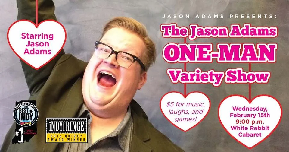 America’s favorite valentine, Jason Adams is putting on a Variety Show! On Wednesday February 15th, 9:00PM, Jason Adams will proudly present, Jason Adams’ One-Man Variety Show Starring, Jason Adams!