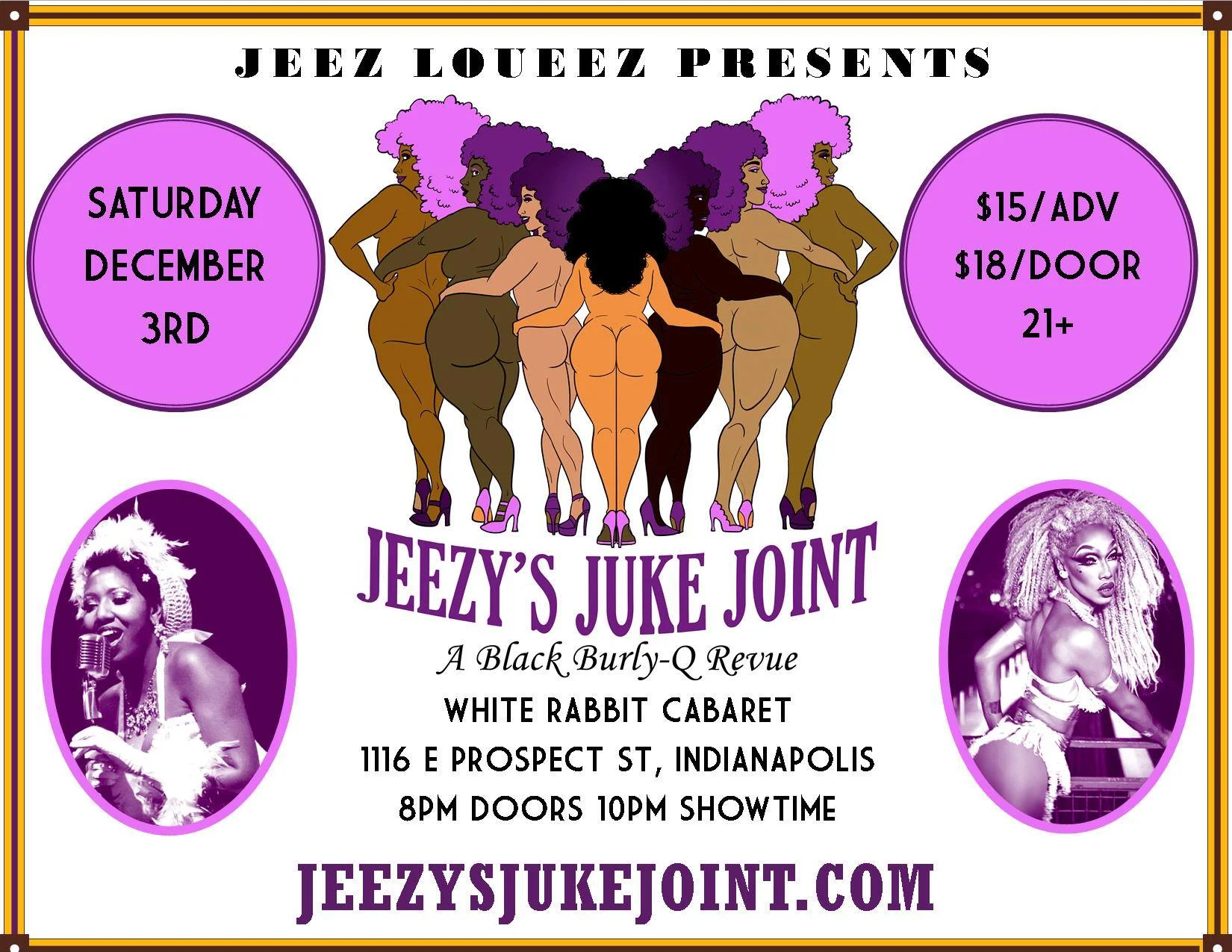Chicago's own Jeezy's Juke Joint is returning to Indianapolis December 3rd! The show that features the brightest brown-skinned burlesque stars from across the country is proud to make its Indianapolis debut! After 4 years of sold out hit shows in Chicago and St. Louis, the Midwest's ONLY all-black burlesque revue is hitting the road.