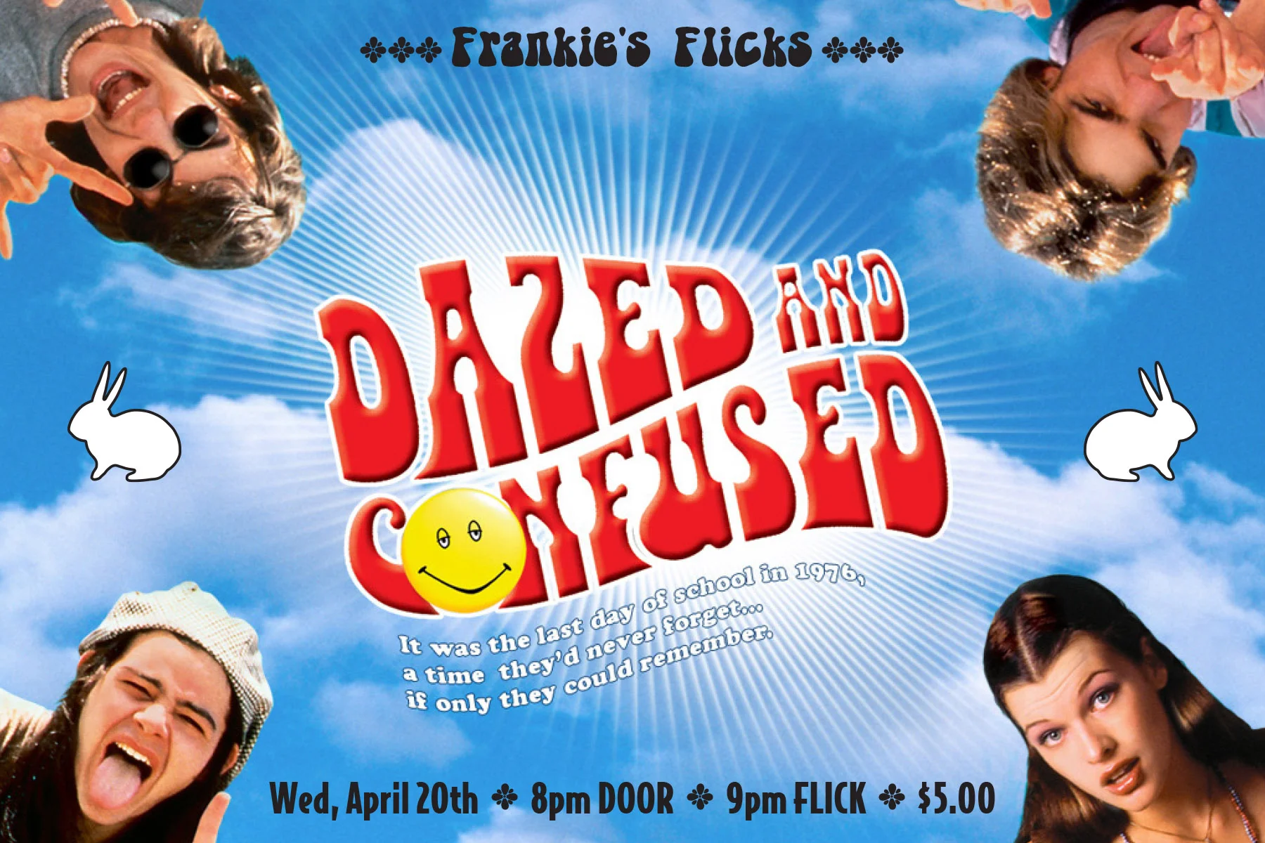 On 4/20 and you'd be a lot cooler if you made your way down to The Rabbit to join Frankie JJ Holliday Jr. for a special presentation of this Richard Linklater classic.