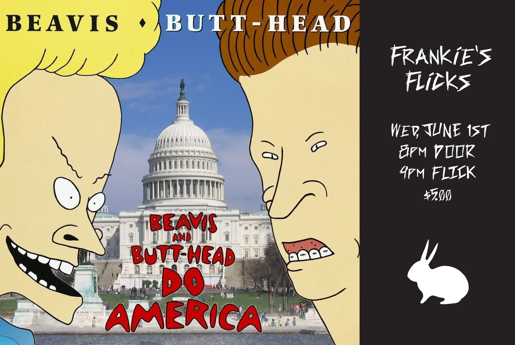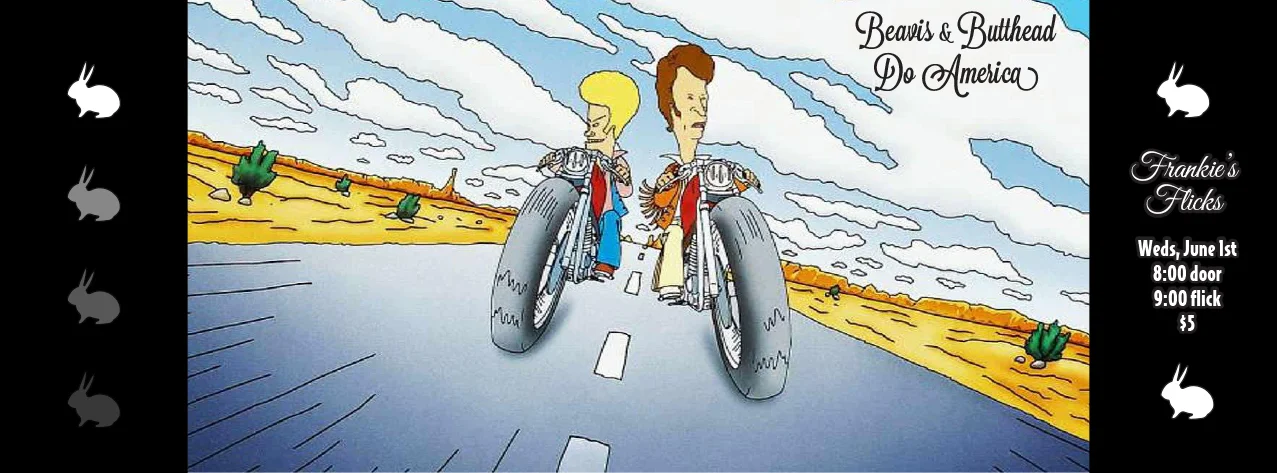 UhhhUhhh, don't be an asswipe and join Frankie as he completes his hesher trifecta with an evening of Beavis & Butthead tromping about America. Bow down to the almighty Bunghole!