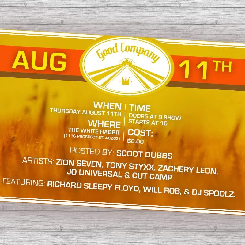 Cut Camp presents Good Company w/ Zion Seven, Tony Styxx, Zachery Leon, Jo Universal & Cut Camp and featuring Richard Sleepy Floyd, Will Rob & DJ Spoolz