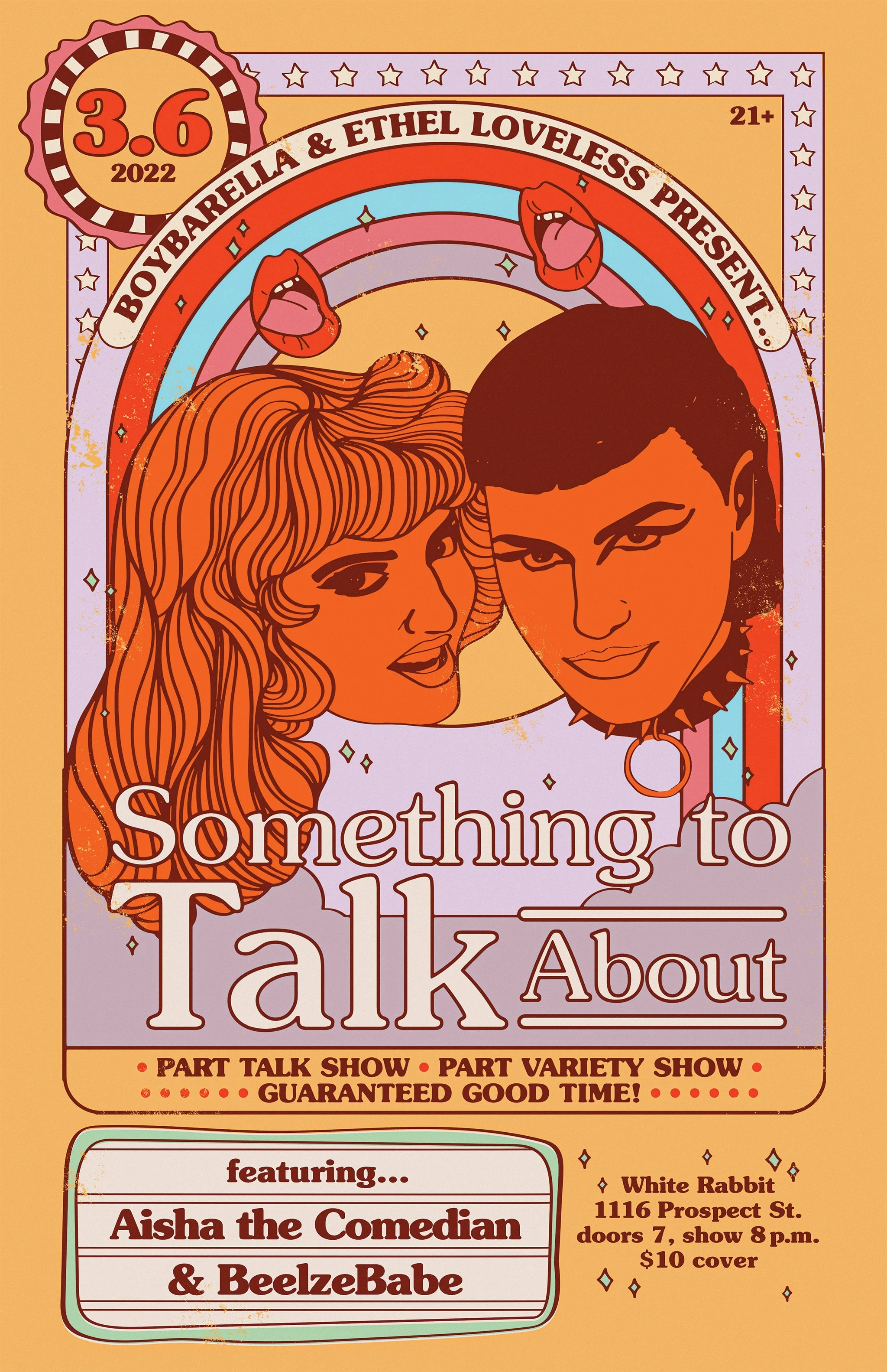 With their part talk show part variety show, debaucherous buddies Ethel Loveless and Boybarella are sure to give you Something to Talk About! This quarterly show gives its audience a taste and tease of entertainment while allowing them to encounter a different side of their favorite artists when the entertainers chat with the show’s hosts.