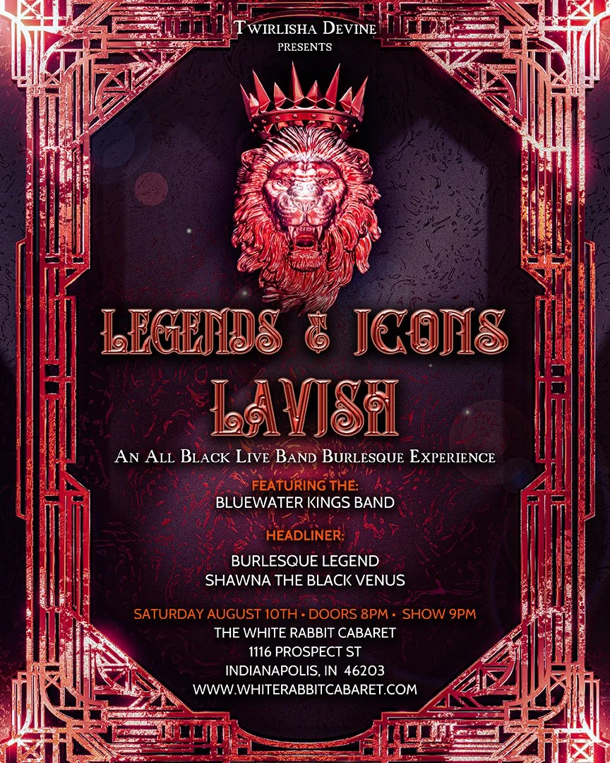 Twirlisha Devine present Legends & Icons an all Black Burlesque Revue is going to LAVISH you with a Bluewater Kings LIVE BAND experience! The second installment of this three day weekend is going to be a buffet of breathtaking beats and bountiful booty shaking you don’t want to miss!