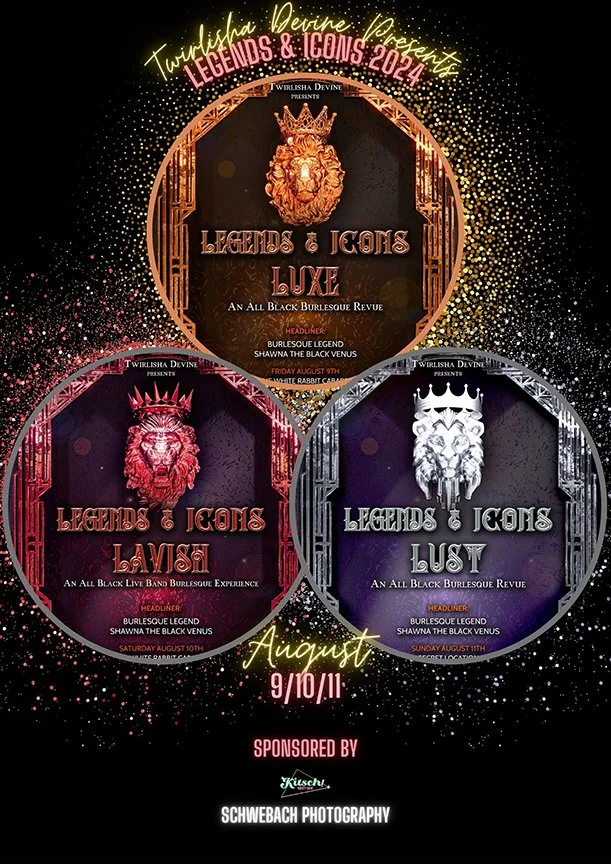 Twirlisha Devine Presents Legends & Icons an All Black Burlesque Revue is back for 2024 and bigger than ever!! We’ve got a 3 day weekender packed with three specially curated casts bringing you a magically unique ecdysiast experience each night headlined by the legendary Shawna the Black Venus